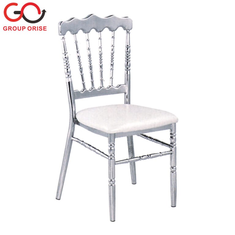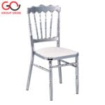 CL025-4908 | Glossy Silver Napoleon Banquet Chair with White Cushion – Flat Back Design