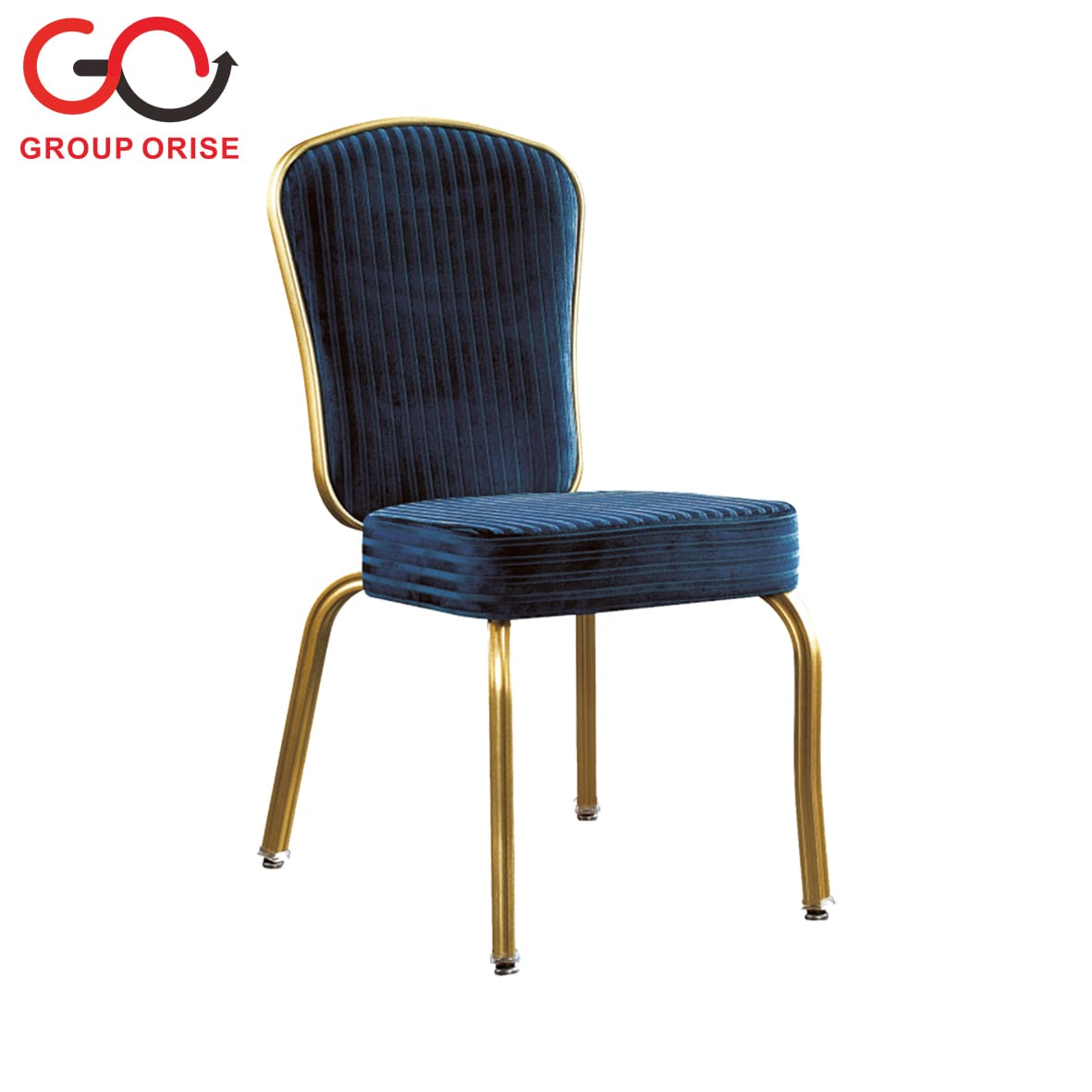 CL025-016 | Navy Strip Banquet Chair – Gold Frame with Vertical Ribbed Upholstery