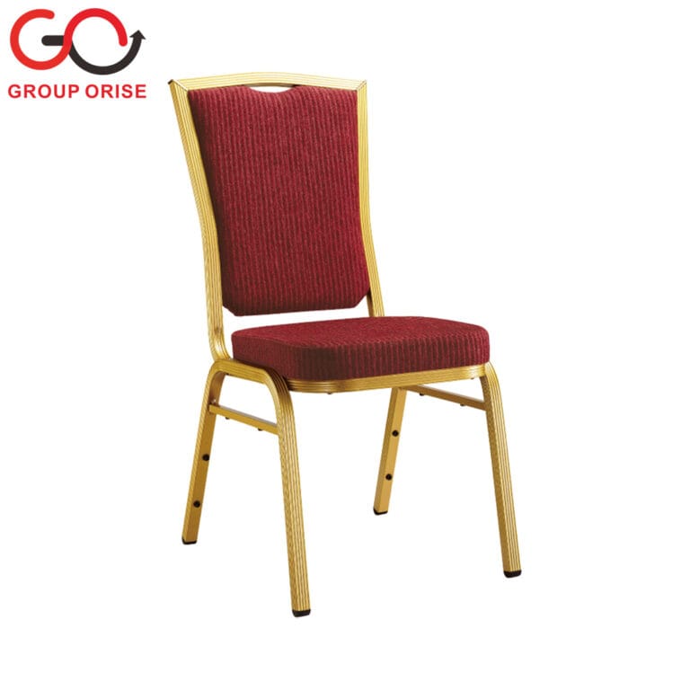 CL025-008 | Modern Banquet Chair – Gold Frame with Deep Ribbed Red Upholstery