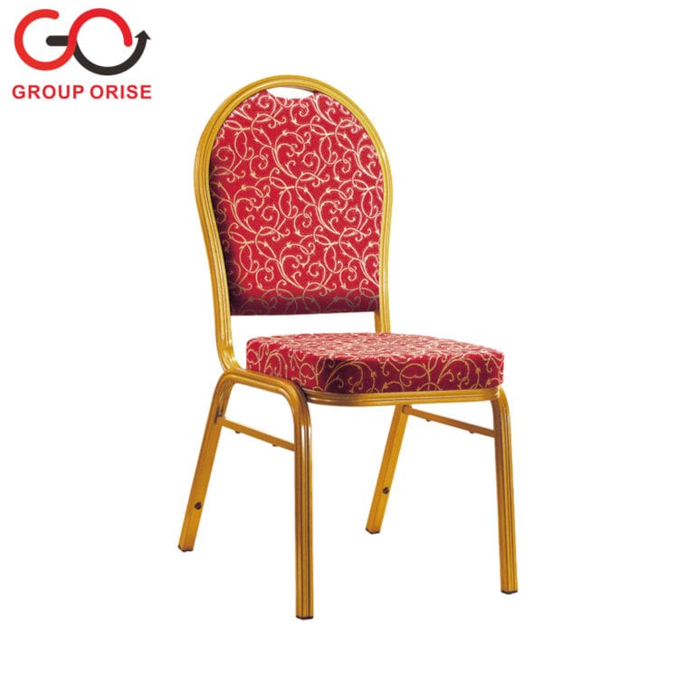 CL025-012A | Classic Scroll Banquet Chair – Gold Frame with Red and Gold Floral Upholstery