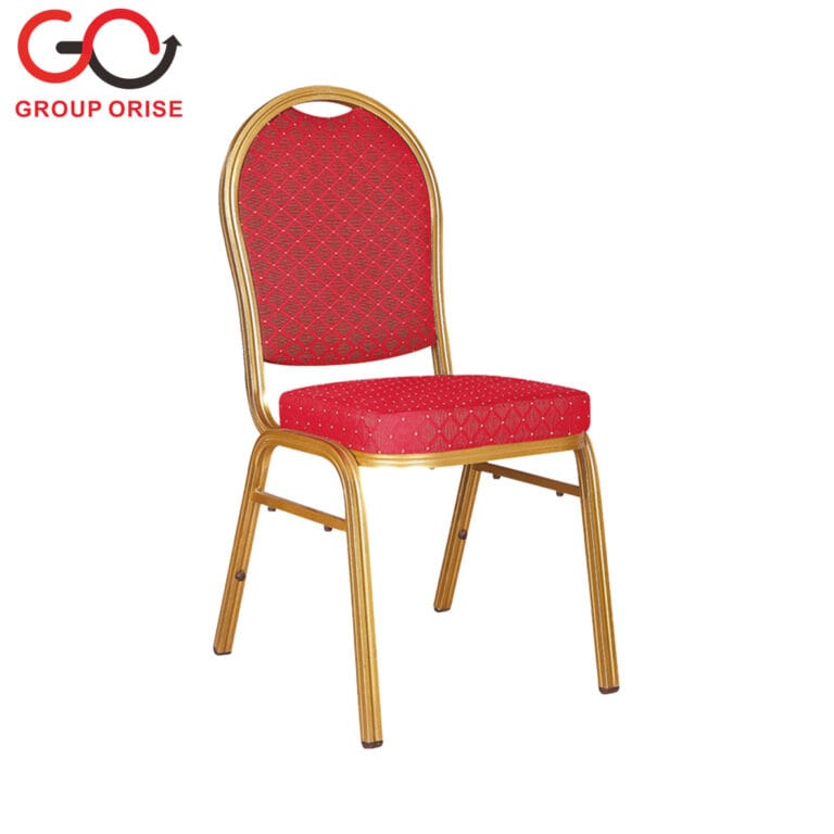 CL025-216 | Classic Scroll Banquet Chair – Gold Frame with Red Diamond Patterned Upholstery