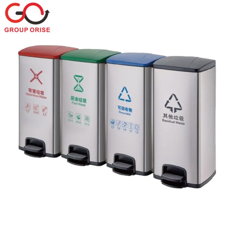 G08-01S-4 | Quad Waste Bin – Red (Hazardous), Green (Food Waste), Blue (Recyclable), Black (Residual Waste)