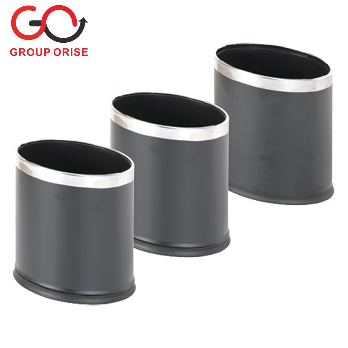 Z04-C-132 | Double Barrel Padel Waste Bin – Grey Oval with Silver Rim (Set of 3)