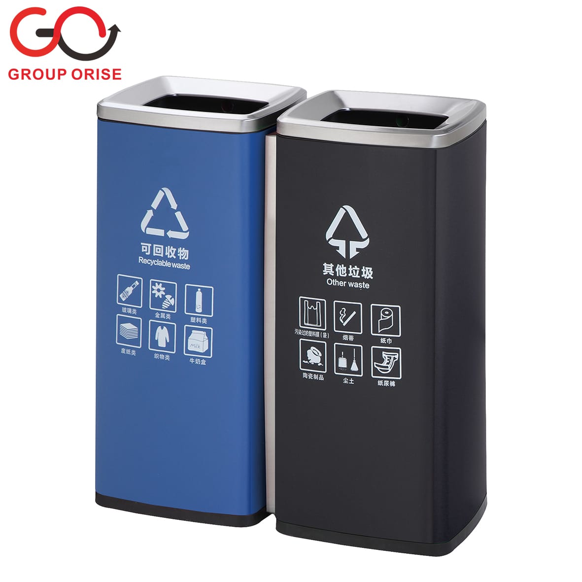G08-02B-2 | Dual Waste Bin – Blue (Recyclable), Black (Other Waste) with Square Top Openings