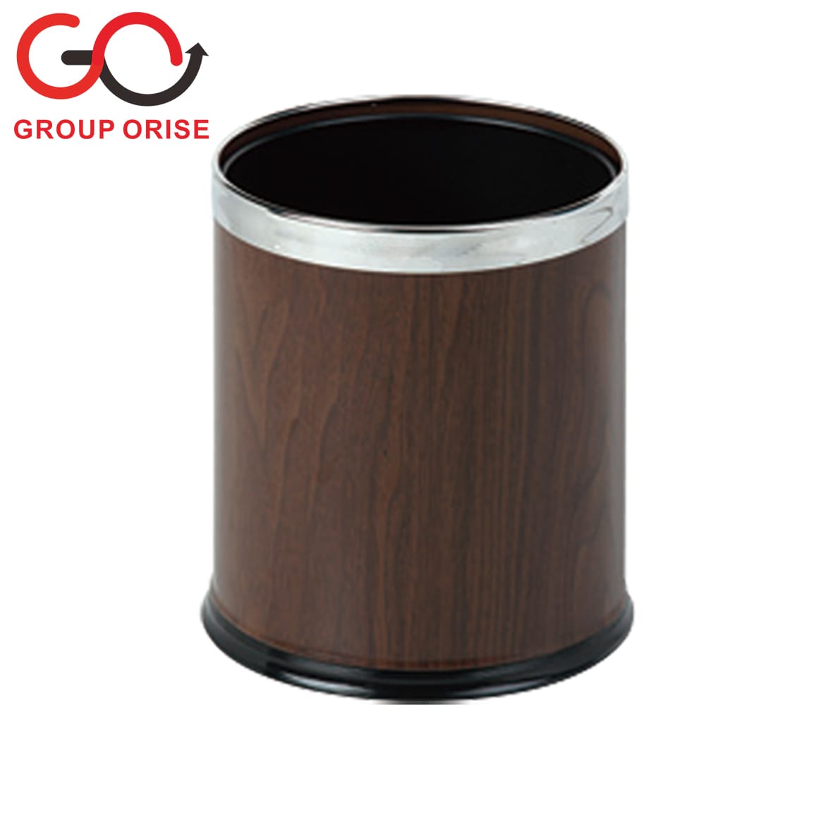 Z04-C-160 | Double Barrel Waste Bin – Iron + Iron (Wood Finish with Silver Rim)