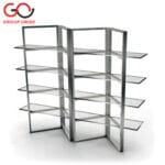 Z02-05-884 | Glass Cross-X-Frame Food Display Shelf – Stainless Steel Showcase
