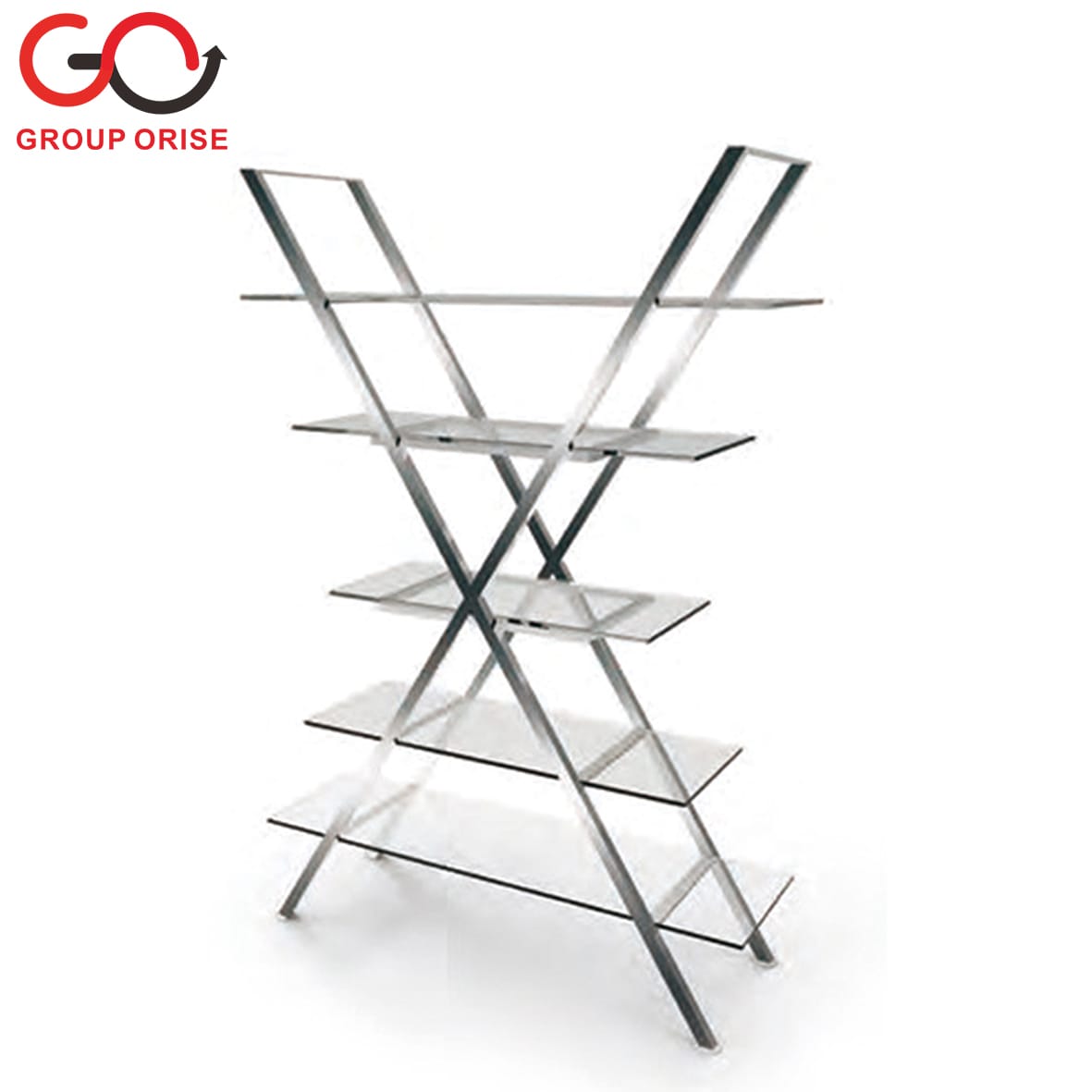 Z02-05-884 | Glass Cross-X-Frame Food Display Shelf – Stainless Steel Showcase