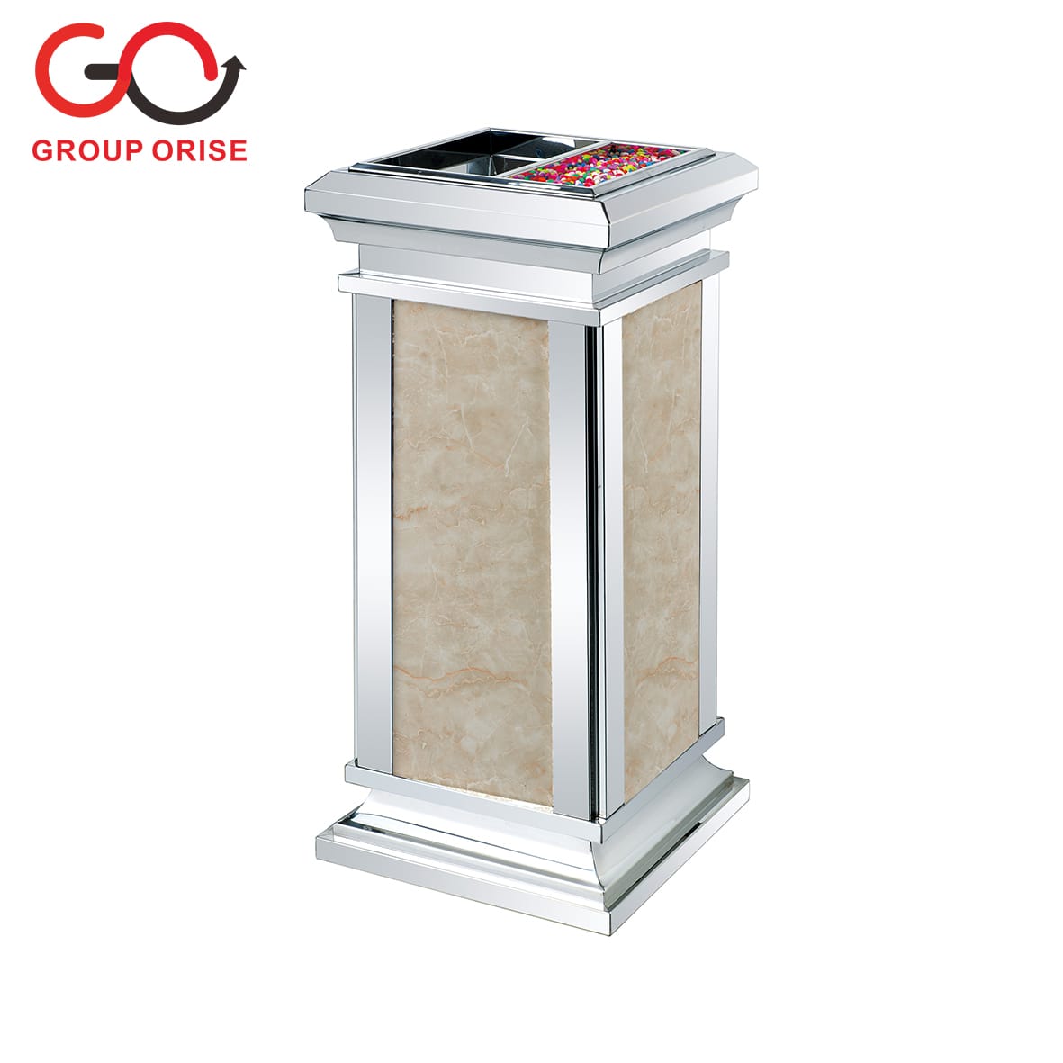 H022-B213 | Indoor Waste Bin – Silver Frame with Beige Marble Panels and Ashtray Top