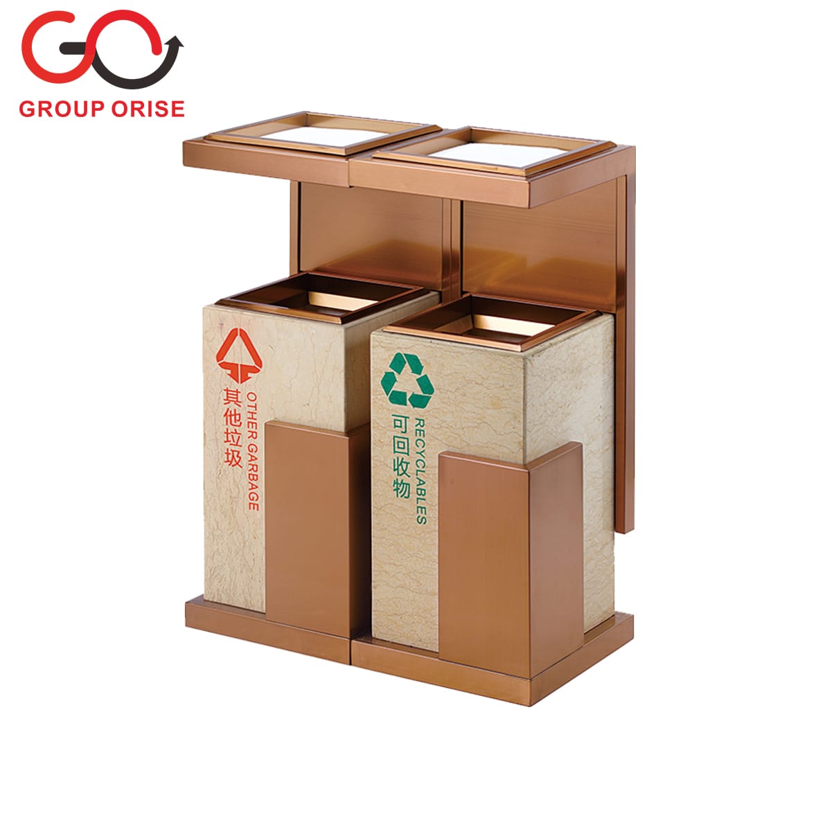 H022-B213 | Indoor Waste Bin – Silver Frame with Beige Marble Panels and Ashtray Top