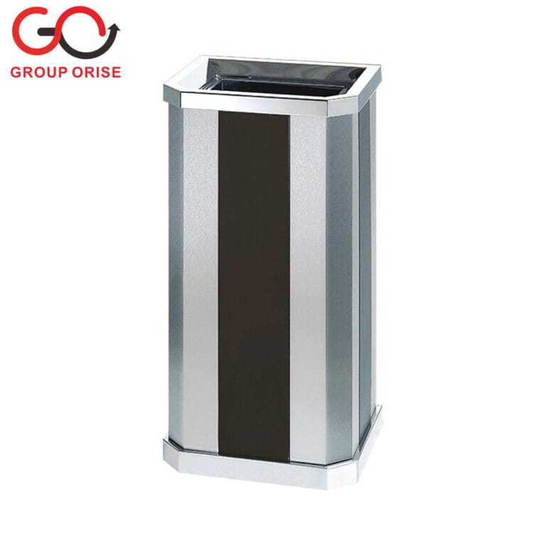 H022-B015 | Indoor Waste Bin – Silver and Black Tri-Panel Octagonal Body with Ashtray Top