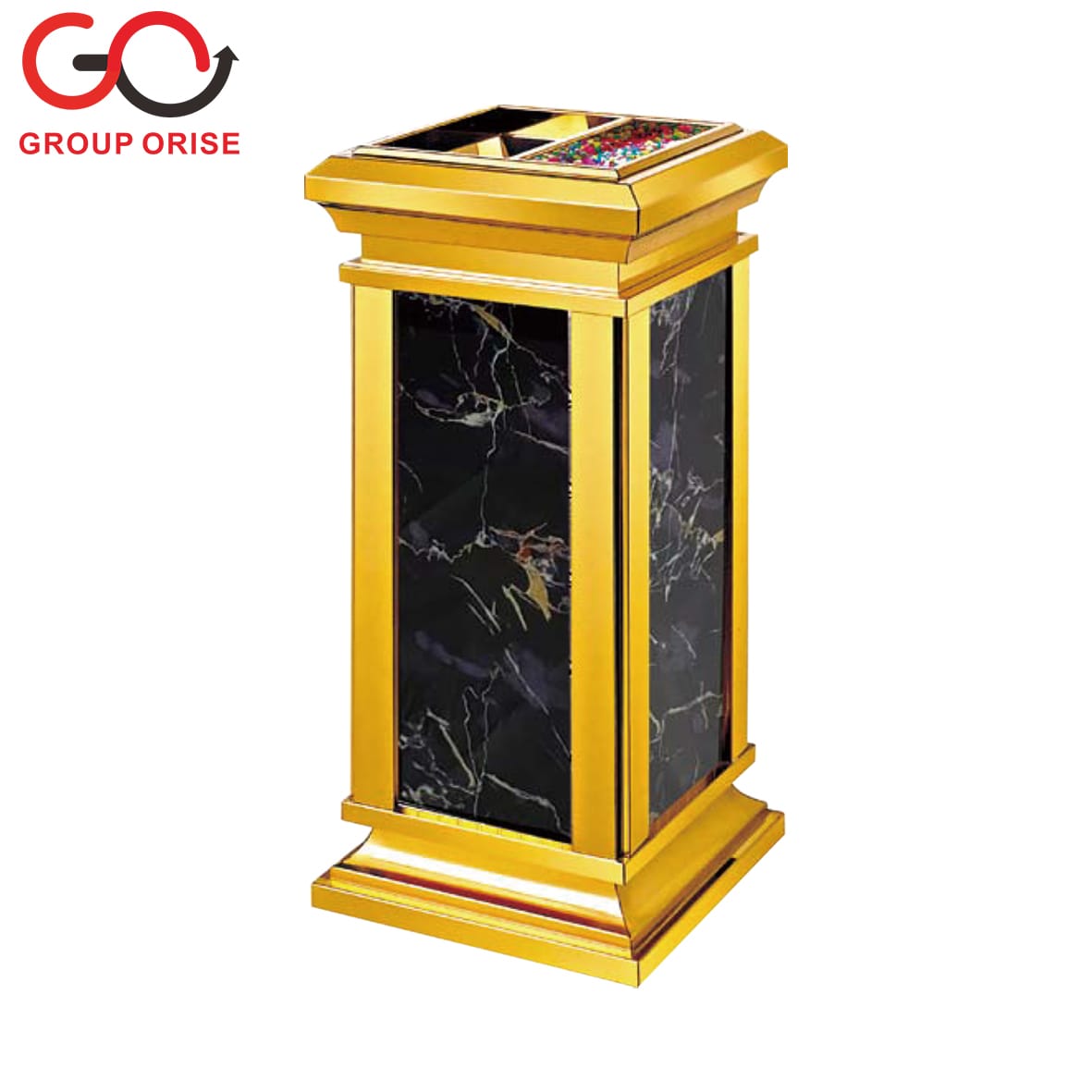 H022-032 | Indoor Waste Bin – Golden Frame with Black Marble Side Panels