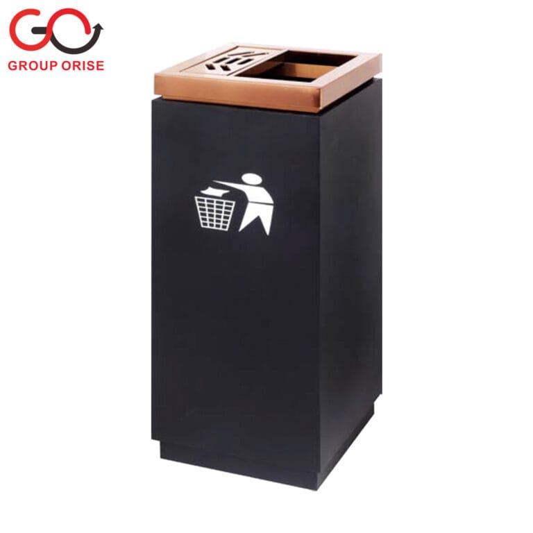 H022-B008 | Indoor Waste Bin – Gold Frame with Black Marble Panel and Ashtray Top