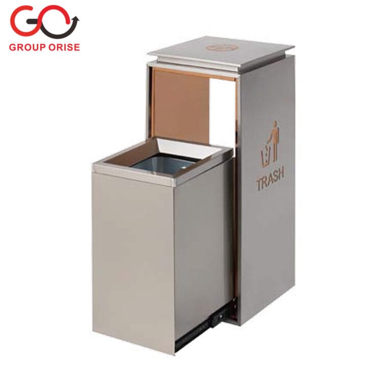 H022-146 | Indoor Waste Bin – Slide-Out Inner Bin with Silver Mirror Finish and “Trash” Marking