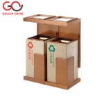 H022-B267 | Indoor Waste Bin – Twin Bin with Planter & Recycling Labels