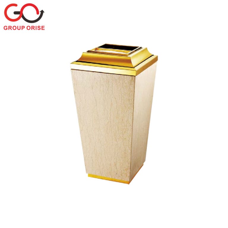 H022-0013 | Indoor Waste Bin – Tall Slim Beige Marble Look with Gold Top