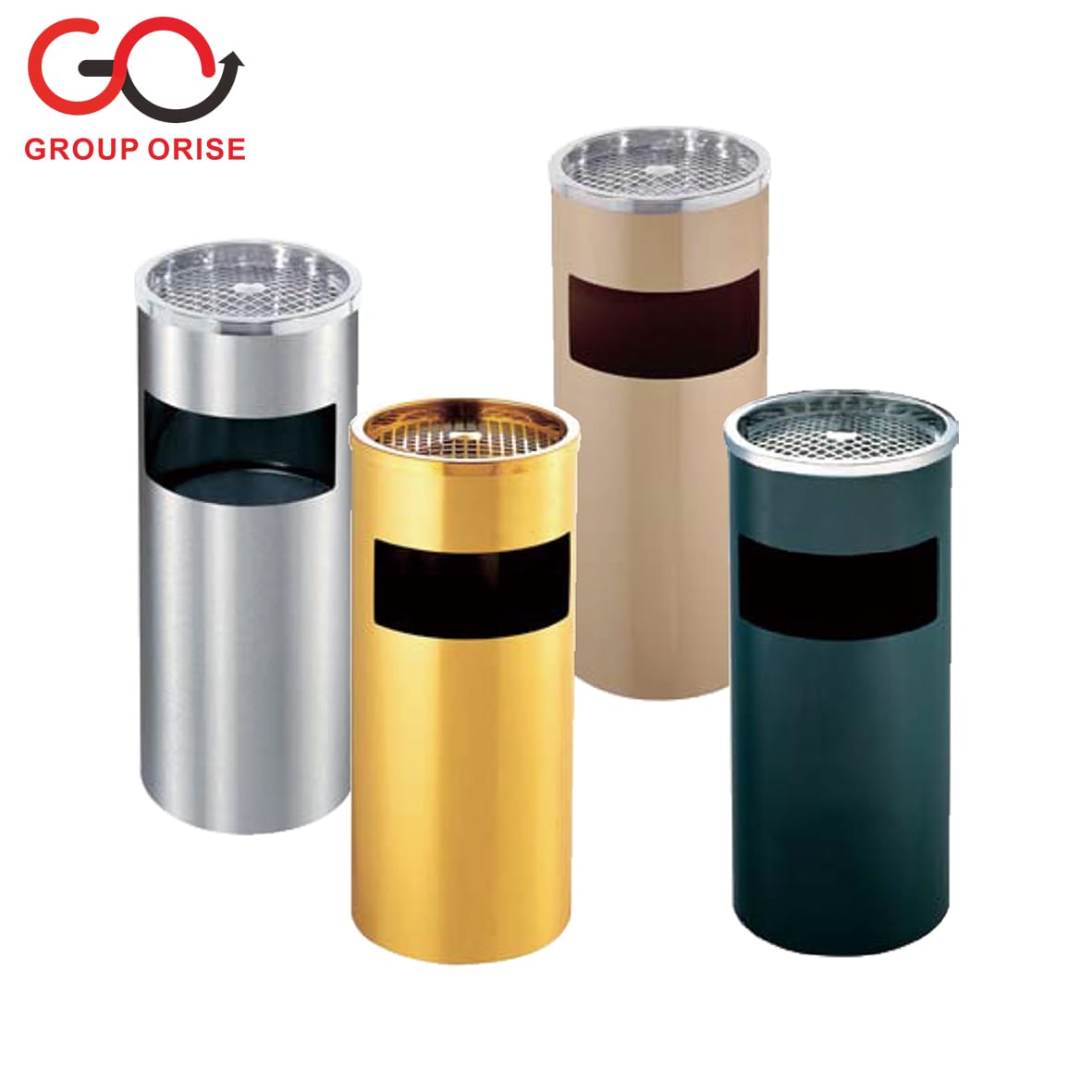 H022-N092A | Round Indoor Waste Bin Set – Assorted Finishes with Mesh Top (Silver, Gold, Bronze, Dark Green)