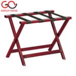 H022-K020 | Elegant Redwood Luggage Rack with Green Straps and Folding Frame