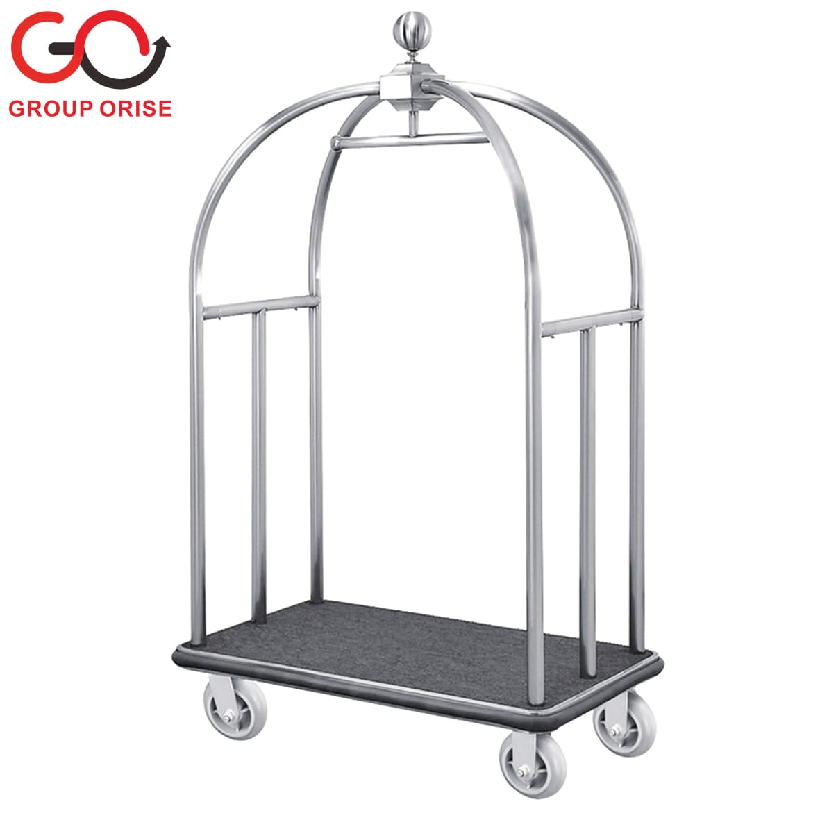 H022-16 | Chrome Bell-Shaped Luggage Trolley with Hooks