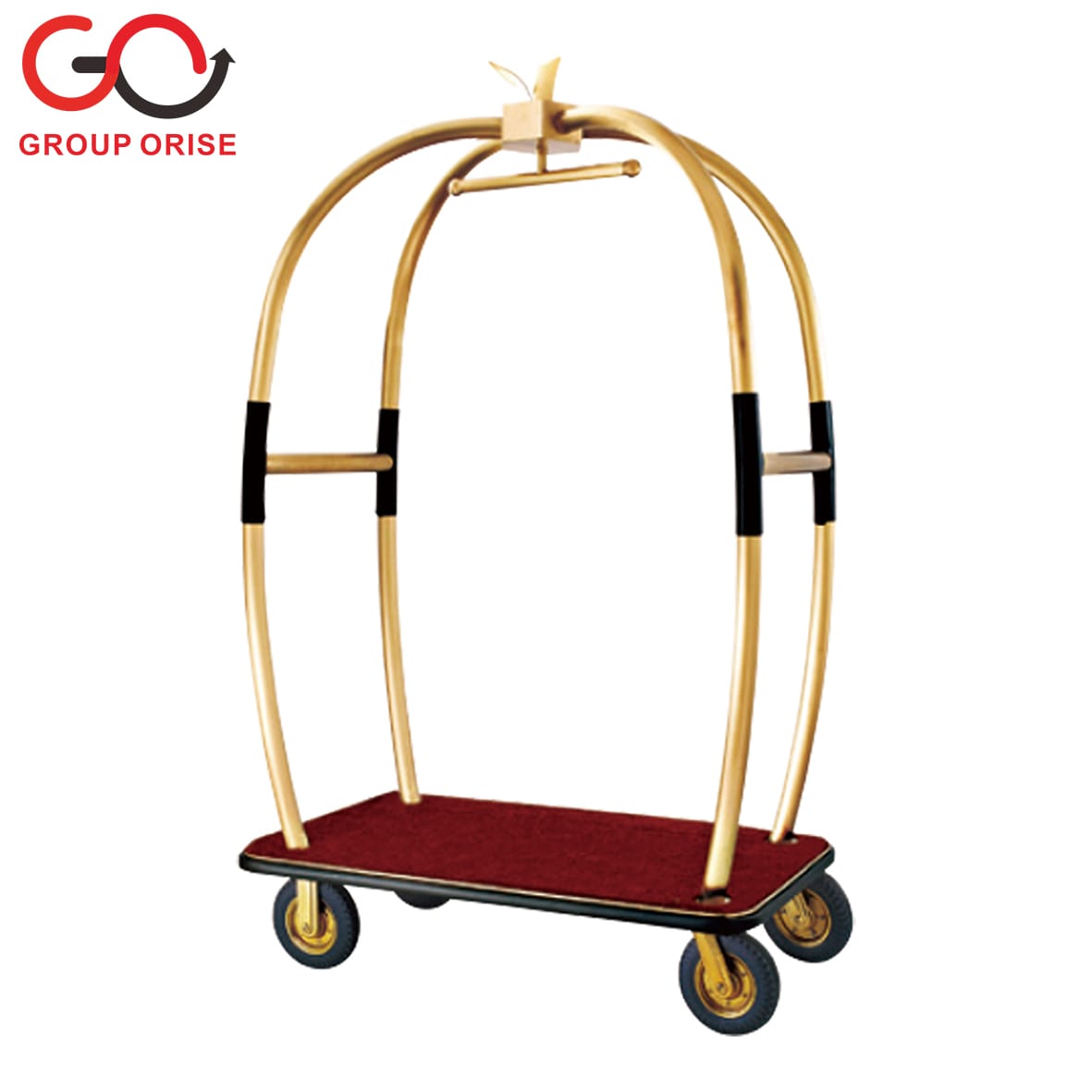H022-208 | Gold Arch Framed Luggage Trolley with Red Carpet and Soft Handles