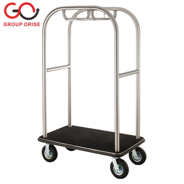 H022-16 | Chrome Bell-Shaped Luggage Trolley with Hooks