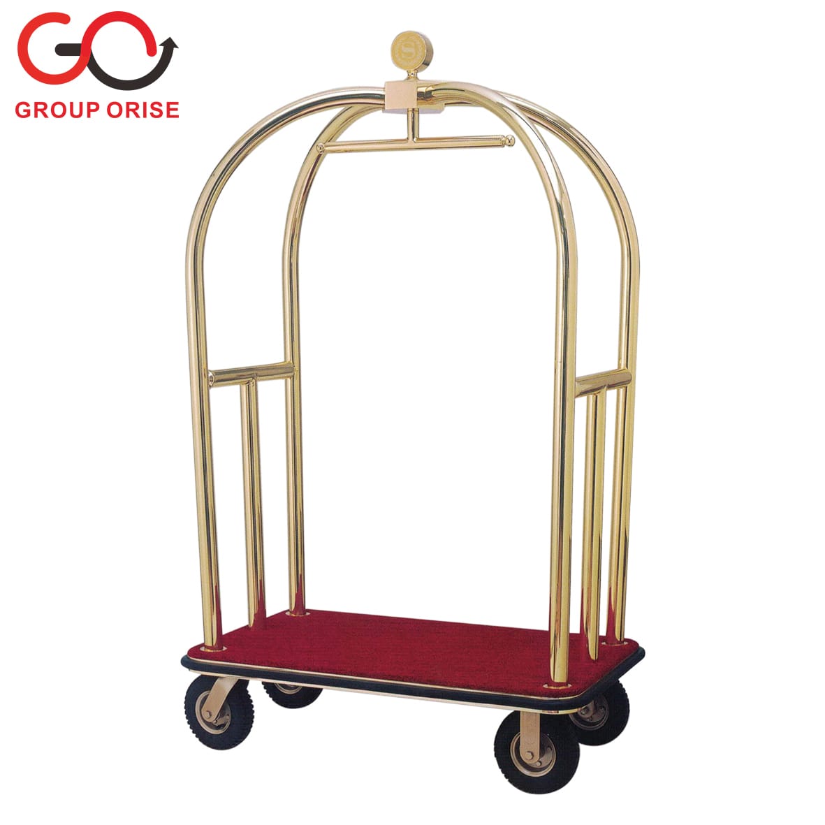 AX05-21B | Luxury Brass Luggage Trolley with Elegant Red Carpet Base