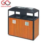 X09-XDDL-081 | Wooden Finish Dual-Opening Recycling Bin with Colored Lids (WPC)