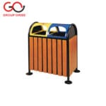 H022-HW087 | Wooden Finish Dual Section Recycling Bin with Flat Lids (WPC)