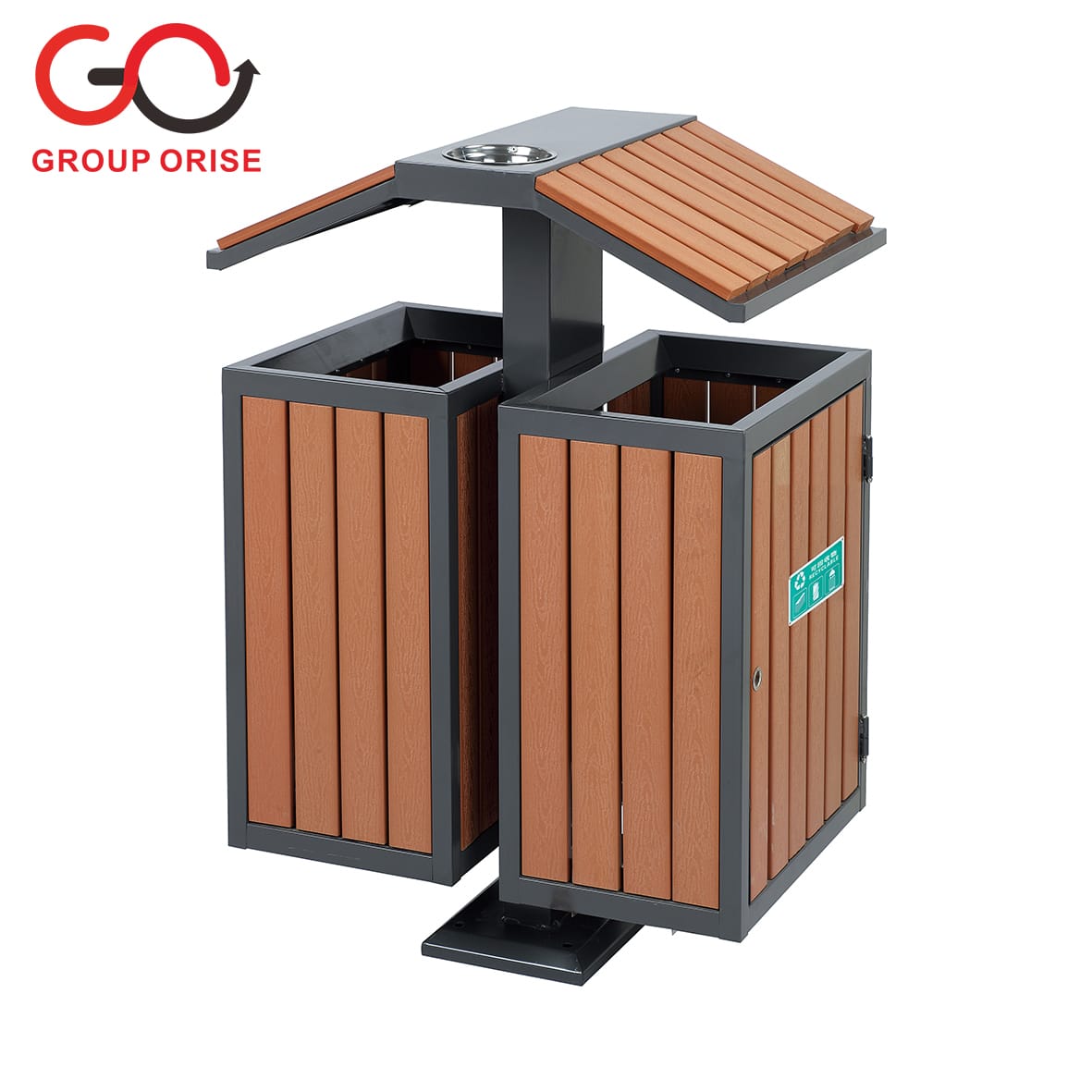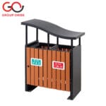 H022-HW082 | Wooden Finish Dual Section Recycling Bin with Roof (WPC)