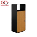 H022-HW087-3 | Wooden Finish Dual Section Trash Bin with Trash Label (WPC)