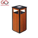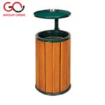 X09-XDDL-041 | Black and Wooden Finish Circular Recycling Bin (WPC)