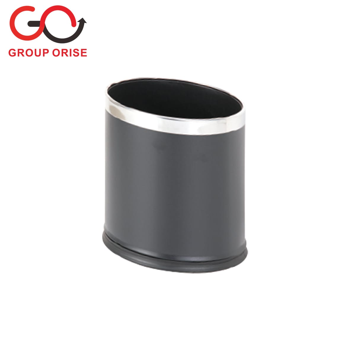 Z04-C-133 | Room Single Waste Bin – Matte Black Oval with Silver Rim