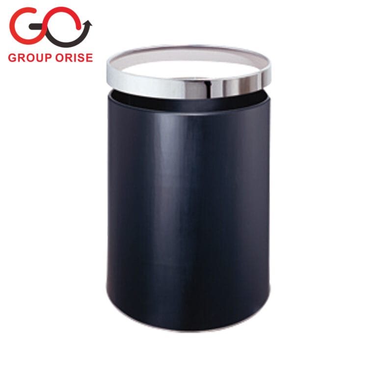 Z04-C-150 | Room Single Waste Bin – Matte Black Round with Wide Chrome Rim