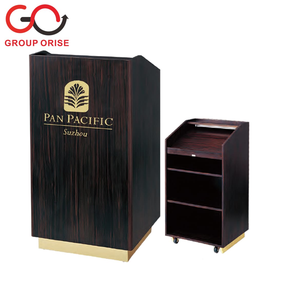 H022-F052 | Luxury Wooden Rostrum with Marble Inlay and Gold Accents – Prestigious Presentation
