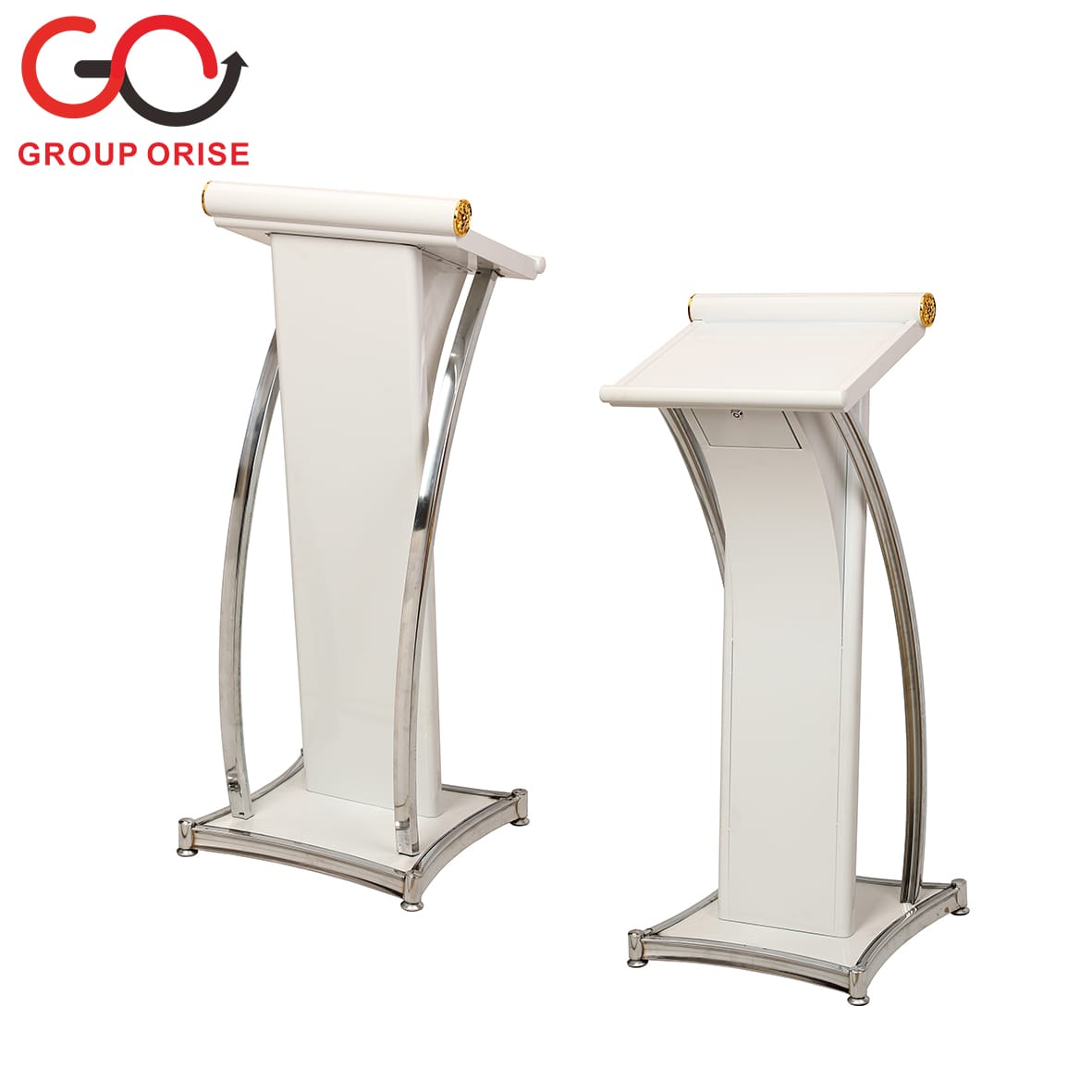 H022-F001 | Minimalist White Rostrum Podium with Microphone Holder – Ideal for Meetings and Events